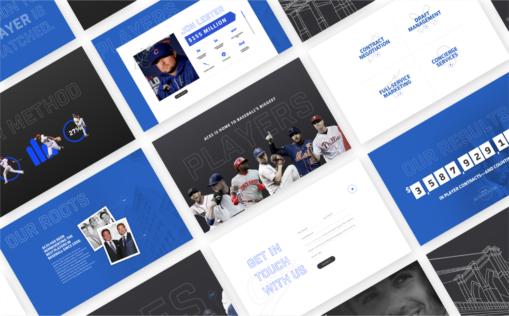 Forbes-ranked Aces represents some of the biggest names in professional baseball, serving dozens of world champions, MVPs, All-Stars, Gold-Glovers, Silver Sluggers, and Rookies of the Year. Aces’ impressive roster is only growing as the agency courts up-and-coming talent from all over the country—and the company needed a polished, boutique web presence to show potential recruits the level of quality they could expect from Aces.